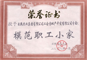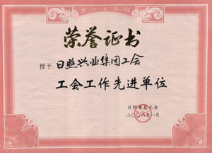 ·2008年,授予“日照興業(yè)集團(tuán)有限公司工會(huì)房地產(chǎn)開(kāi)發(fā)有限公司工會(huì)模范職工小家”