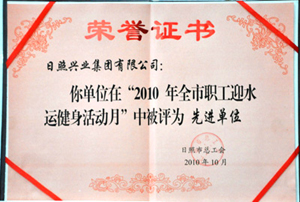 ·2010年10月,興業(yè)集團在“2010年全市職工迎水運健身活動月”中被日照市總工會評為先進單位