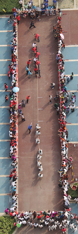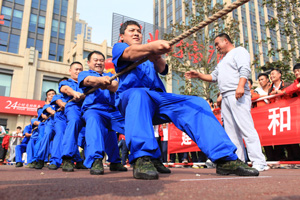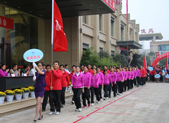 當天,來自興業(yè)集團各下屬單位的8支代表隊476名運動員精神飽滿地參加了“團體跳繩”、“開火車”、“協(xié)作運球接力”、“車輪滾滾”、“滾雪球”、“拔河”等團體項目的比賽,整個現(xiàn)場氣氛熱烈,充滿激情,充分展示了“務實、創(chuàng)新、拼搏、進取、奉獻”的興業(yè)精神和活力、和諧的企業(yè)風采。另外,興業(yè)社區(qū)中老年文體活動俱樂部在開幕式上進行了太極拳和健身操表演。精彩的開幕式表演和緊張激烈的比賽吸引了眾多市民駐足觀看。